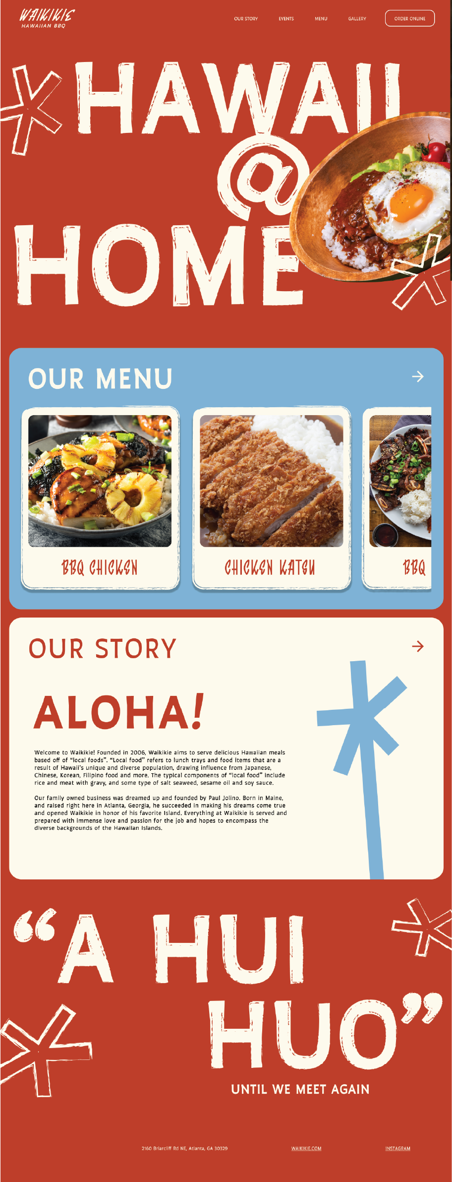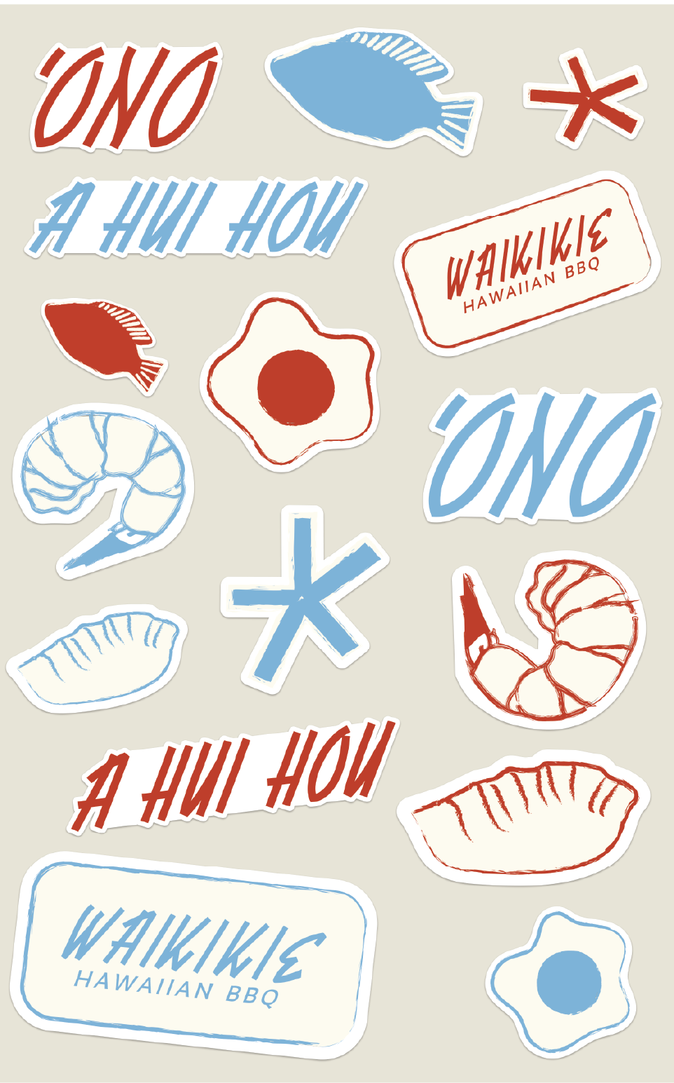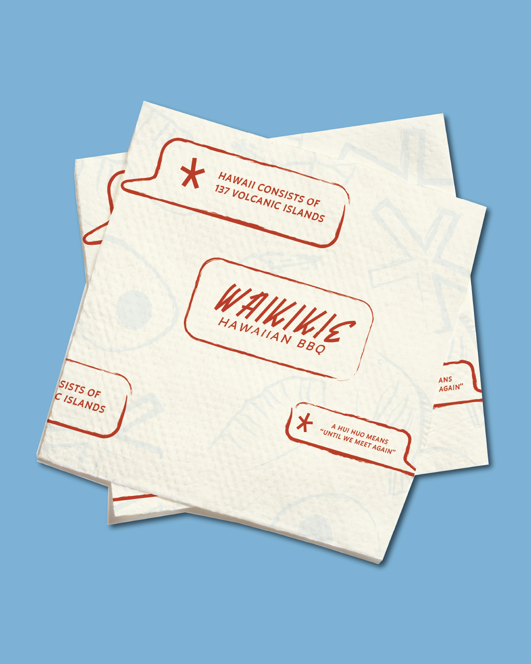 Full rebrand of a local Hawaiian BBQ restaurant. The Waikikie rebrand features a complete transformation of the restaurant’s identity. This includes a refreshed logo, an entirely new brand identity, and brand positioning centered around a playful 1950s-inspired illustrative style. Alongside the new identity, the deliverables span from a revitalized social media campaign, billboards, redesigned menus, napkins, sticker sheets, branded merchandise, and a fully redesigned website.